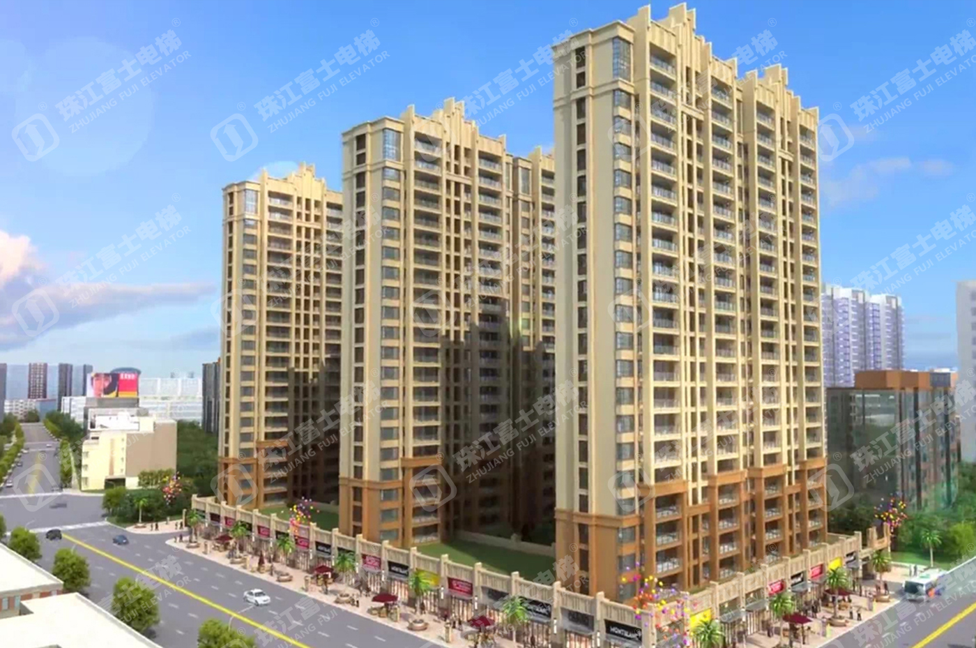 珠江富士電梯為該項(xiàng)目提供了12臺(tái)GSTK1050kg、1.5m/s的高速乘客電梯。